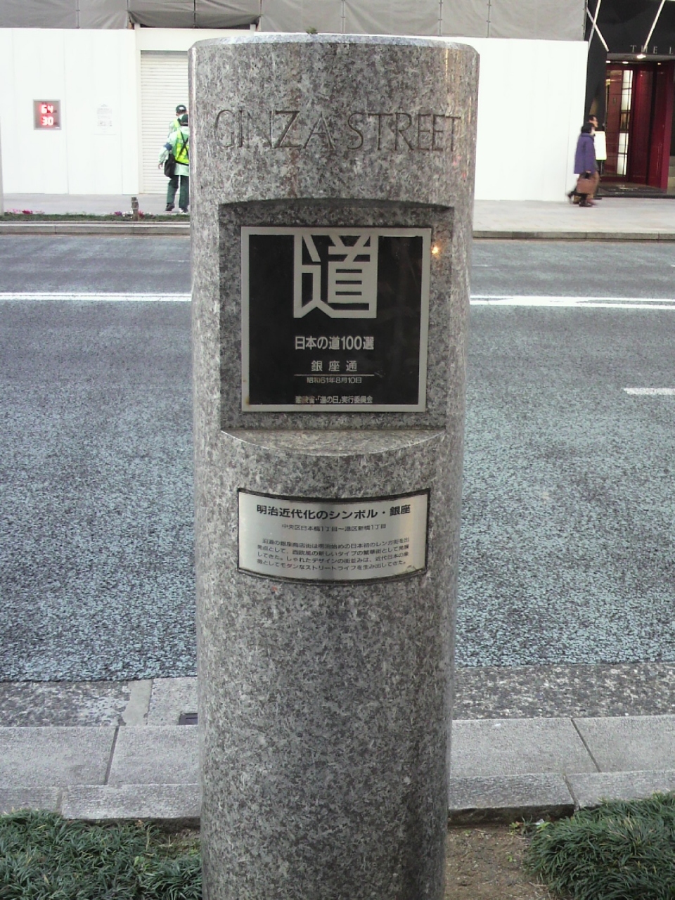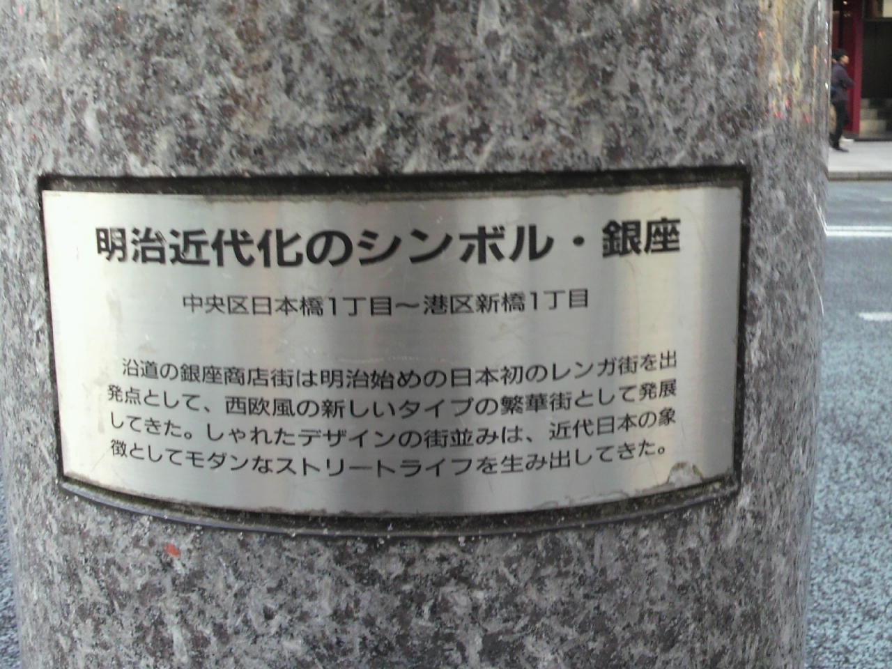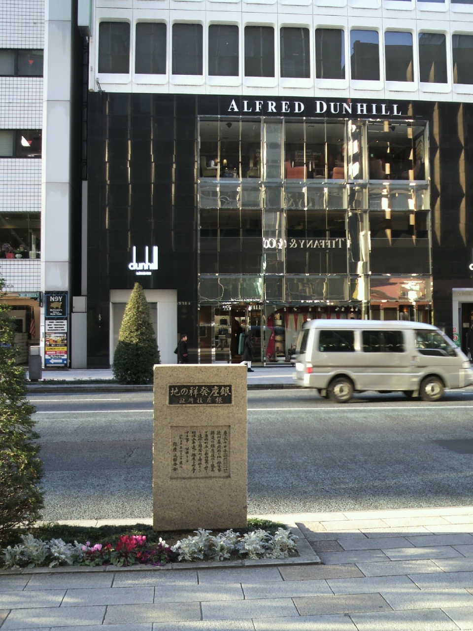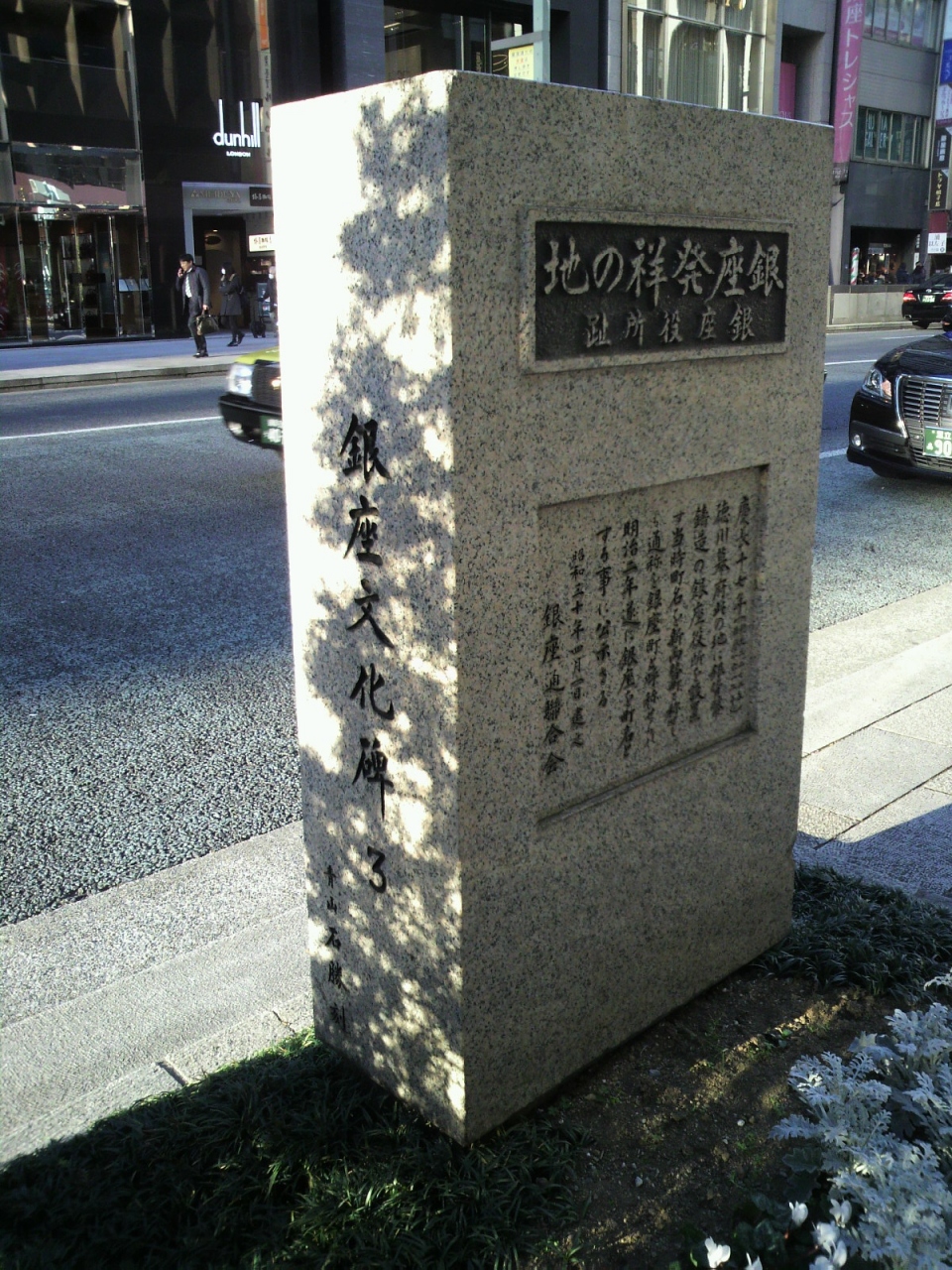 銀座中央通り沿いの銀座2丁目に、銀座発祥の地の碑が建てられています。