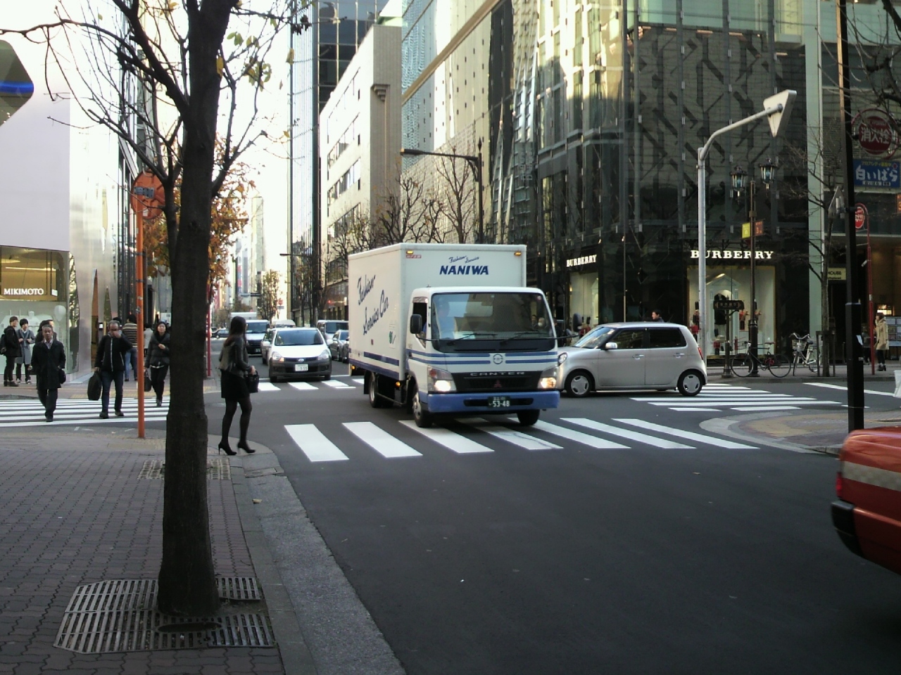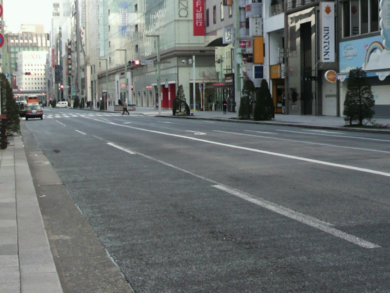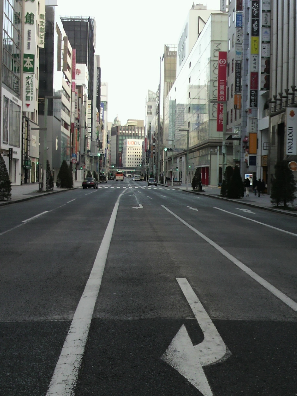 銀座の中央を、日本橋から新橋方向に貫く、大きな通りです。国道です。