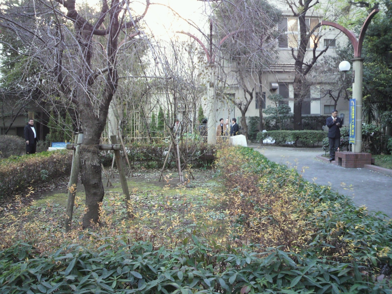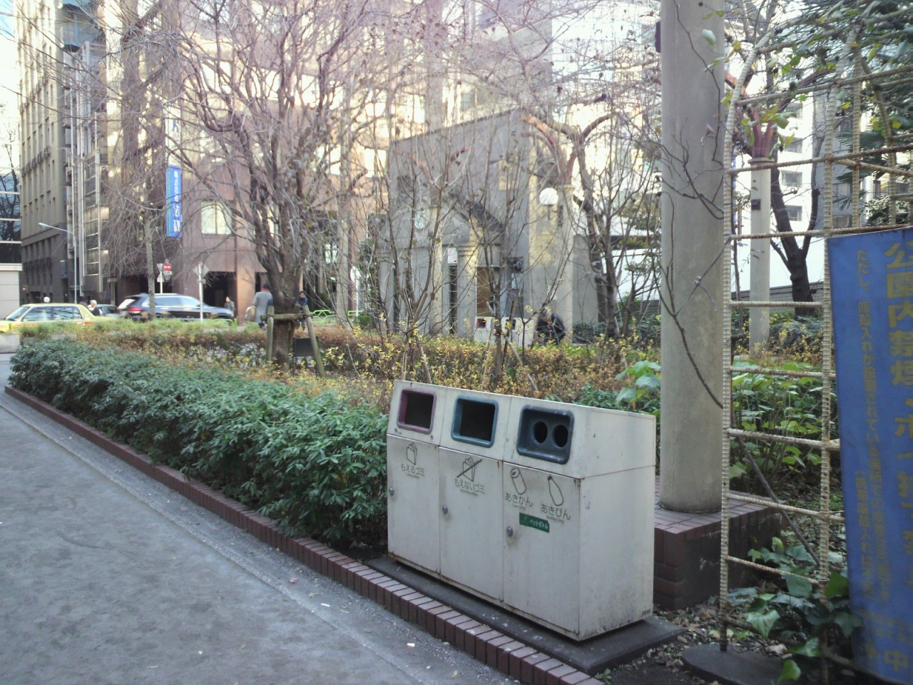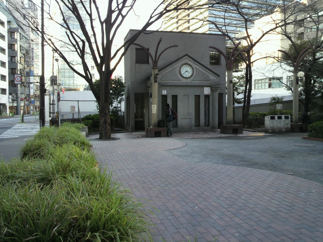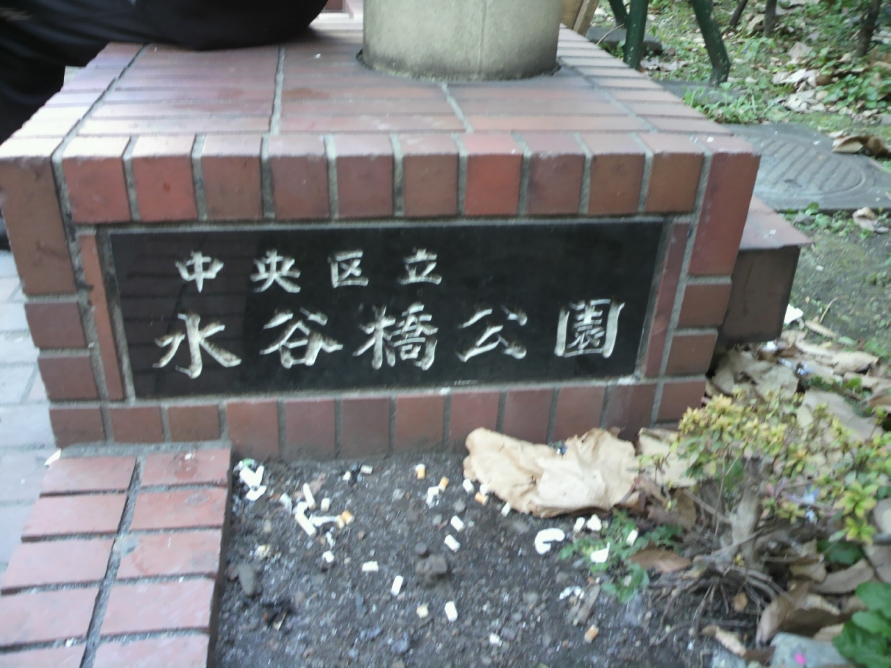 銀座桜通りを昭和通りに向けて歩いて行き、銀座中央通りを過ぎて少し行くと、左側に水谷橋公園が見えてきます。
