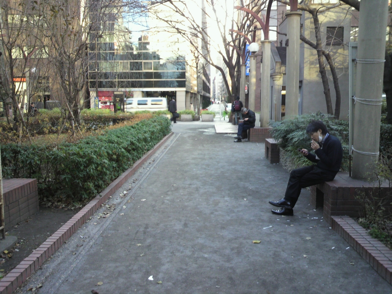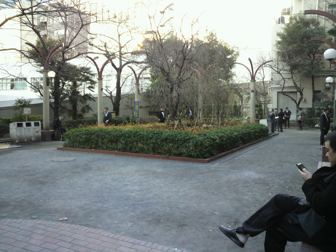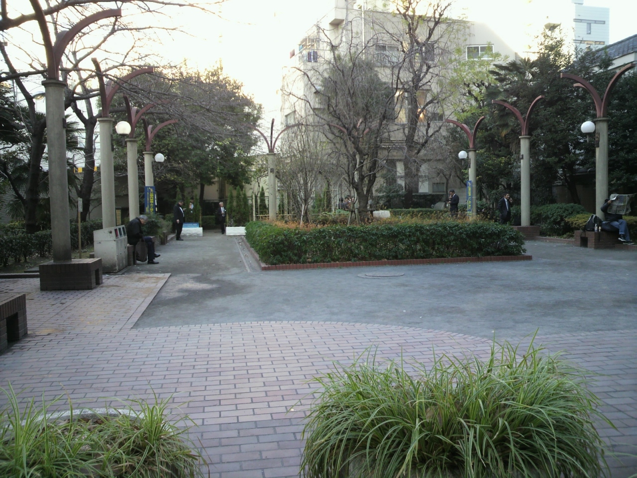 高速道路との間の、あまり広くない公園で、奥に喫煙コーナーがあるせいか、多くの愛煙家がタバコを吸っていました。
