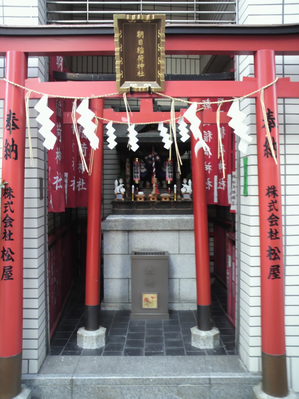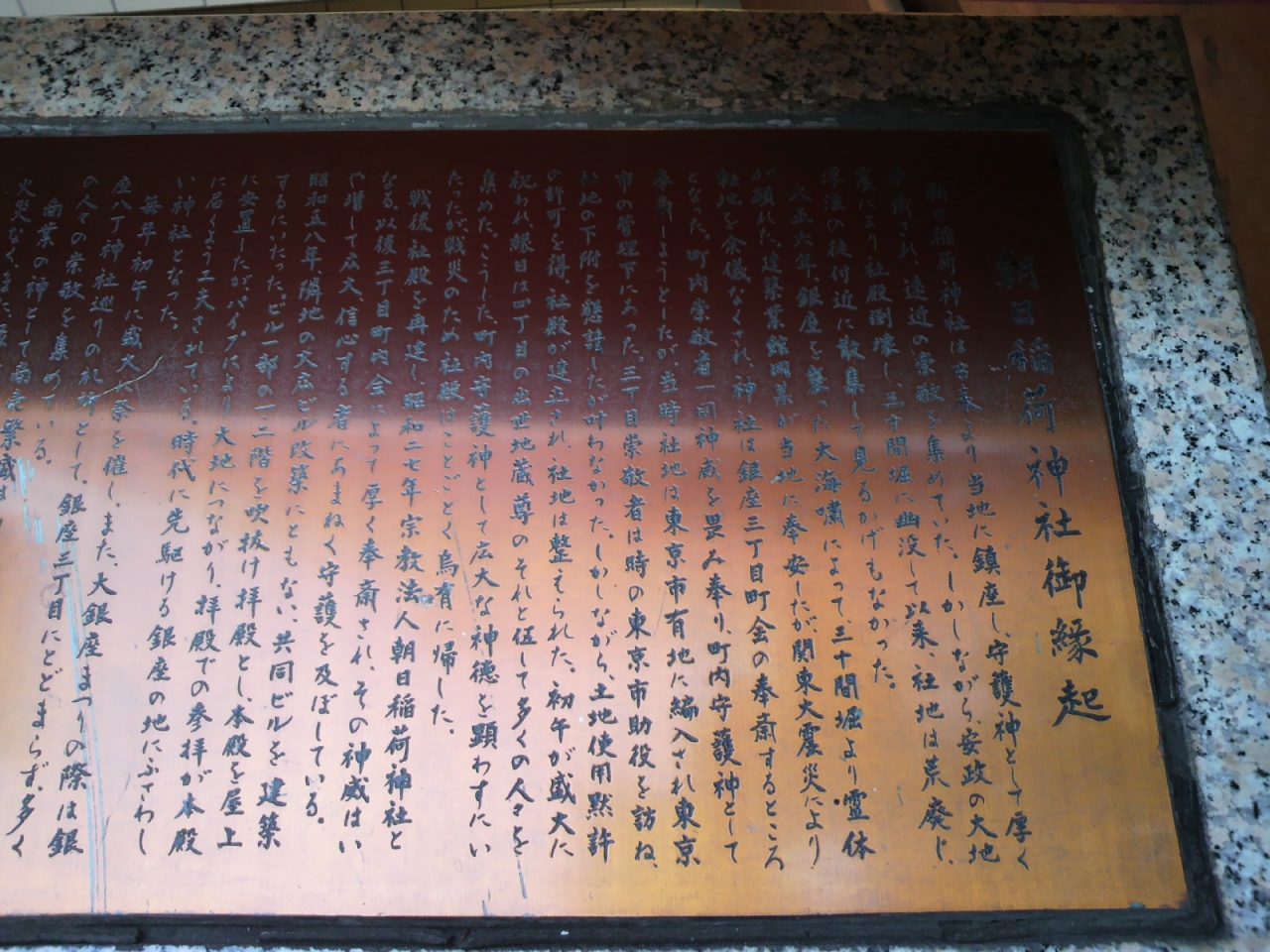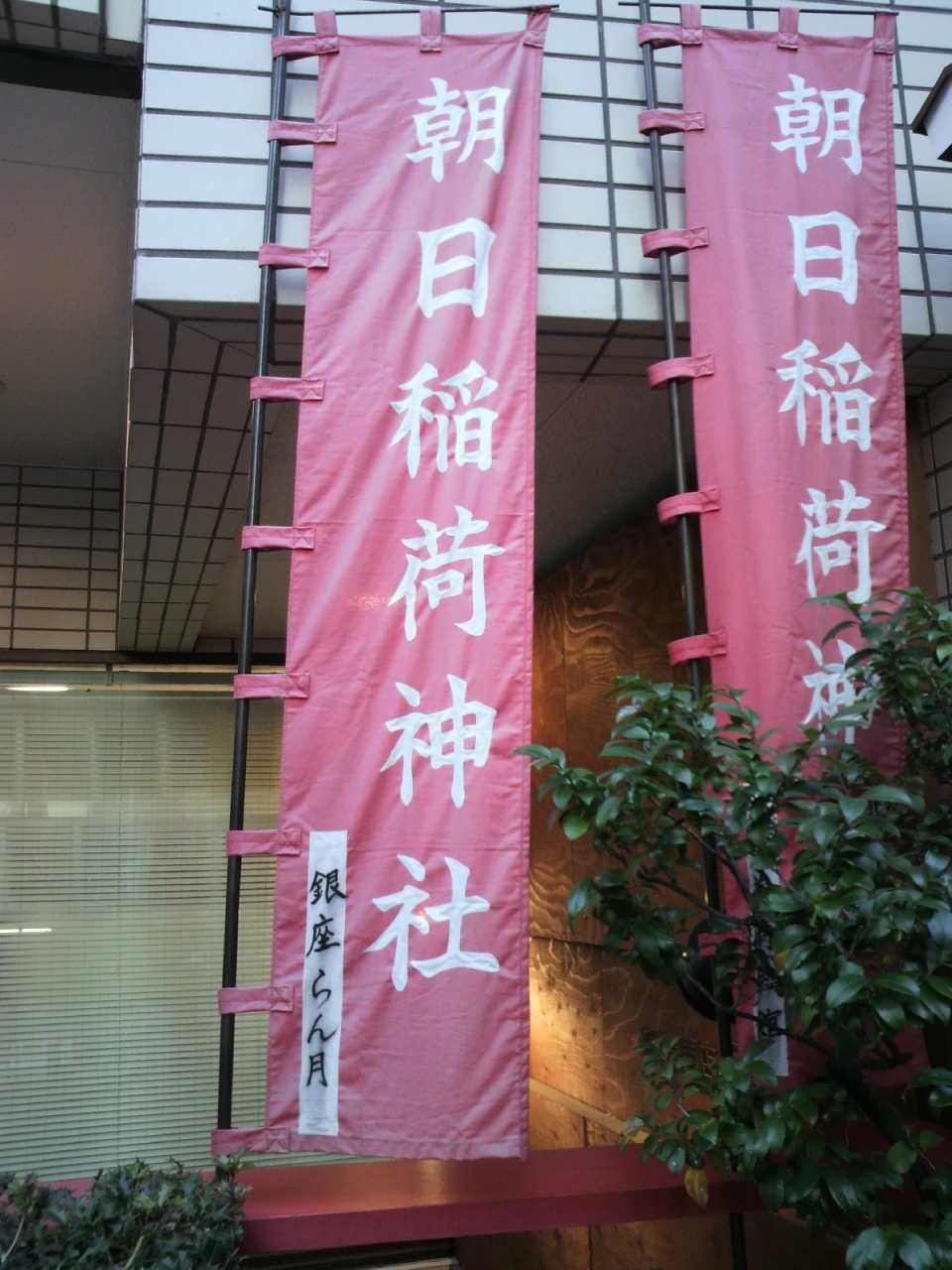 銀座の松屋通りに朝日稲荷神社があります。昭和通りに近い場所です。