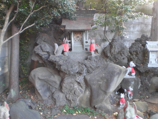 屋上に、稲荷神社本社があり、地上の神社と金属製のパイプで繋がっているという珍しい神社です。