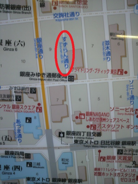 銀座すずらん通りは、銀座中央通りの1本西側の通りで、みゆき通りや交詢社通りと直交する通りです。