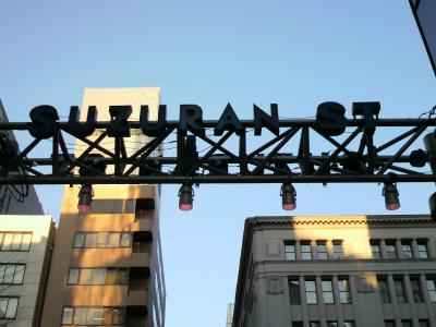 晴海通りにおける始点には、すずらん通りを跨ぐアーチがあり、その上部には、すすらん通りの英文字標識が掲げられています。