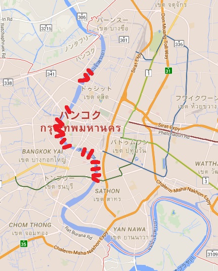 チャオプラヤー川を東西に結ぶ渡し船(フェリー)が低速ですが安価な水上交通手段であるのに比し、エクスプレスボートは、やや高価ですが、速いためとても便利です。