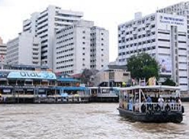 バンコクのチャオプラヤー川を渋滞なく、走り抜けるエクスプレスボートは、便利で速いです。