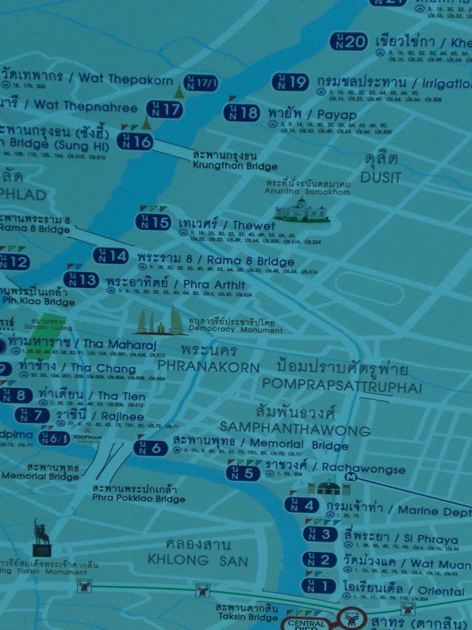 チャオプラヤ川の渡し船は、フェリーと呼ばれ、エクプレスボートと区別されています。