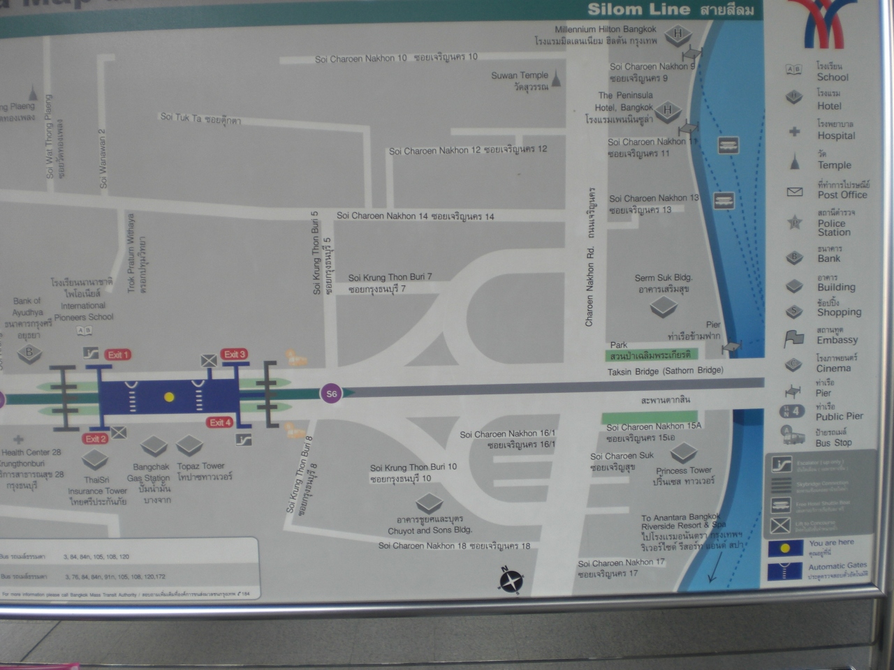 クルントンブリー駅は、シーロム線の駅で、サパーンタクシン駅の西隣になっています。