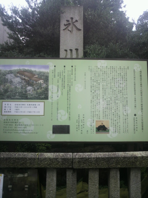 氷川神社の名称は、広く使われていて、麻布、渋谷等の氷川神社と区分するため、赤坂の名前が付けられています。旧の神社の社格としては、府社となっています。