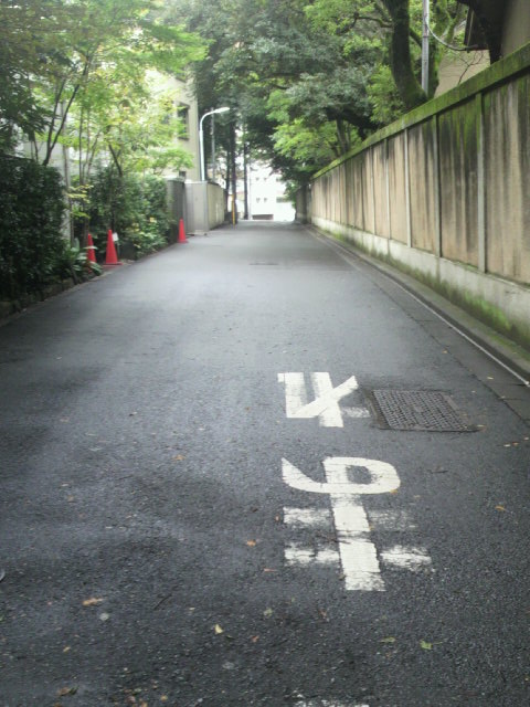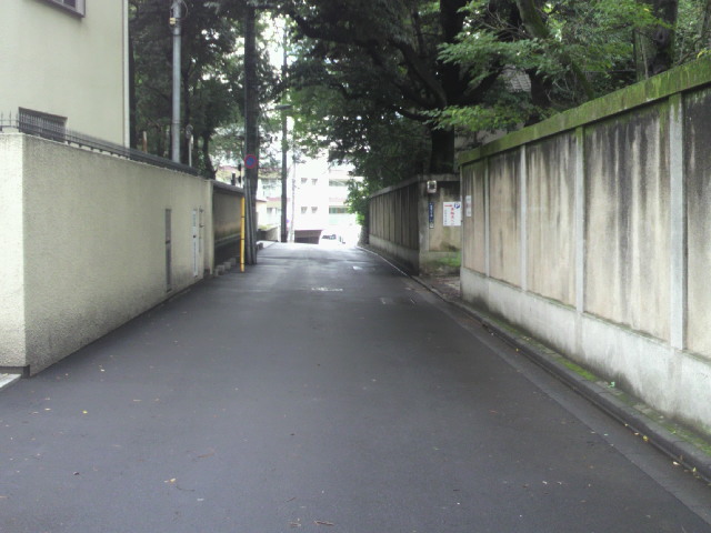坂を登って行くと、霊友会会館の裏手に突き当たります。