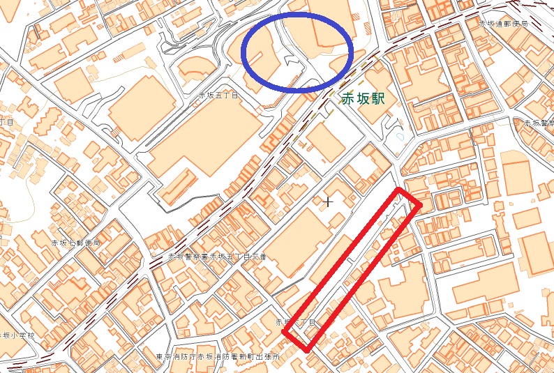 弾正坂は、豊川稲荷神社と赤坂離宮の間の坂で、北に延びています。