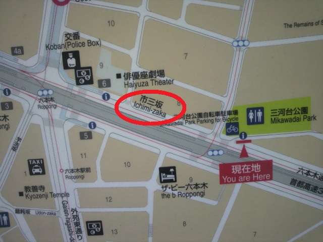 市三坂は、六本木通りと外苑東通りが交差する付近の坂を言います。