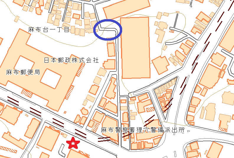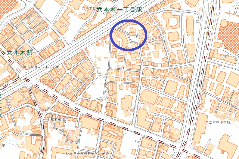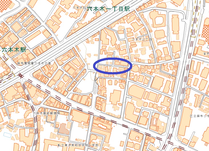 丹波谷坂は、六本木通り、外苑東通り及び麻布通りの三角形の真ん中の位置にあります。