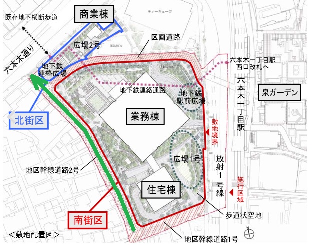 現在は、なだれ坂は、六本木通りに向けての一方通行となっていますが、地下鉄六本木一丁目との通行を含め、新たな姿に生まれ変わることになると思われます。