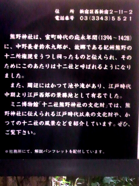 その後、豪商は中野長者として財を成し、熊野権現の十二社を全て移すことに努力しました。