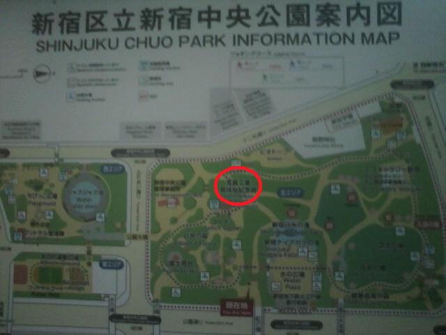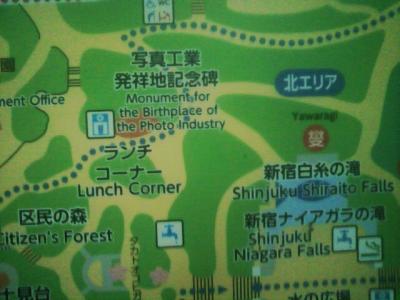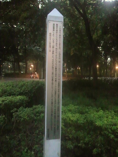 写真工業発祥の地の標識が、新宿中央公園の中に立てられています。
