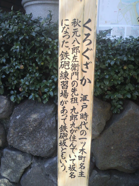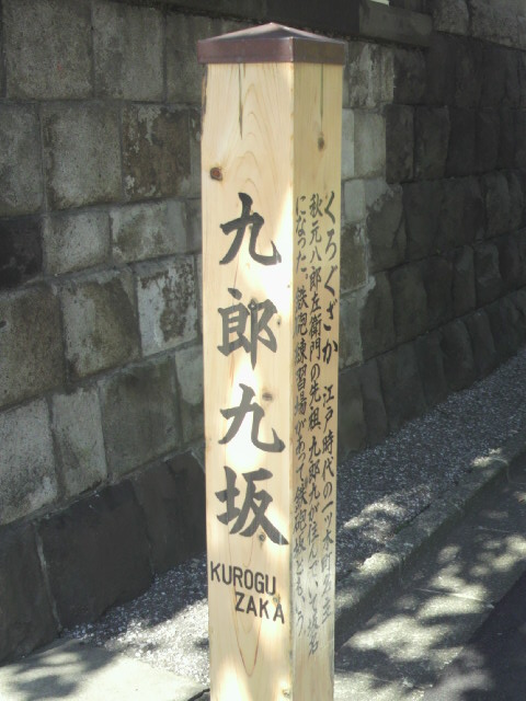 九郎九坂の名前は、江戸時代の一ツ木町の名主の先祖である秋元九郎九の名前から、名付けられたと言われています。