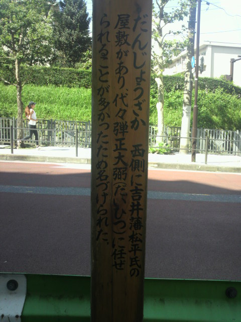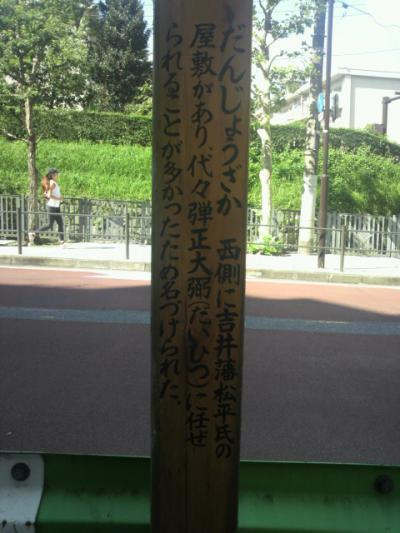 西側に、代々、弾正大弼に任ぜられていた吉井藩松平家の屋敷があったことから、弾正坂との名付けられたとのことです。