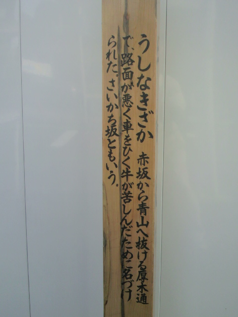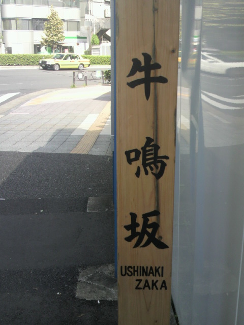 江戸時代の路面が悪かった時代に、荷車を曳く牛が苦しさから鳴いたという故事から、坂の名前となったそうです。