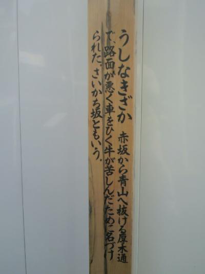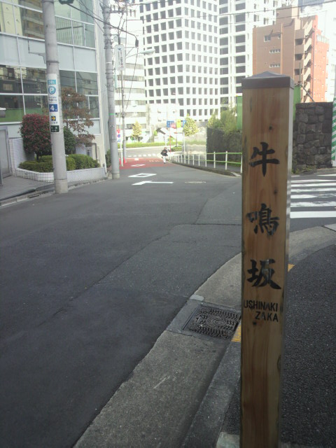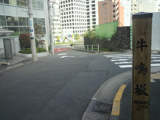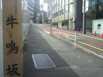 牛鳴坂は、青山通りから赤坂方向に通ずる道路の青山通りからの上り坂を言います。