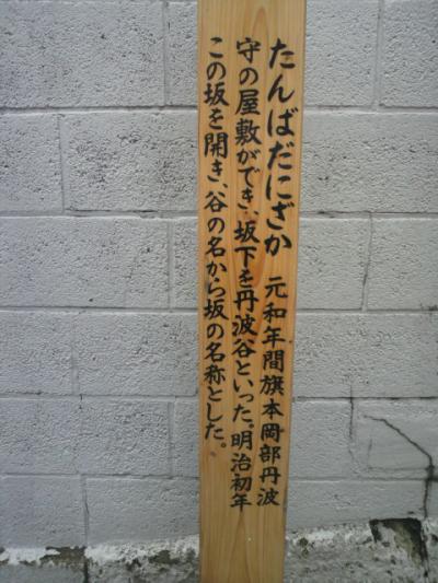 その坂の名前を付ける際、丹波谷からの坂の現況から、丹波谷坂と言われるようになったとの由来があります。