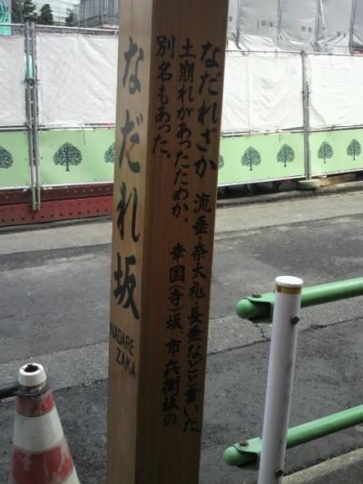 地下鉄六本木一丁目駅の西側に、大規模な再開発事業が進んでいますが、その地域の西側に、なだれ坂があります。
