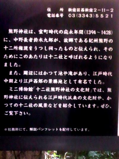 新宿の熊野神社の歴史は、古く、室町時代に、紀州の熊野神社の神官であった豪商が、社を開いたとの由来が伝わっています。