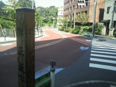 六本木通りと高速道路の高架部分に沿っている坂で、やや圧迫感を感じる坂です。