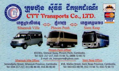 今回は、プノンペンからタイとの国境に位置するポイペトに、高速ミニバスを利用しました。ミニバスは、一般的な大型バスと異なり、10人程度の乗客を乗せ、高速で運行するため、早く乗り心地が良く人気が高いようです。ただし便利で人気が高い反面、料金が高いという欠点もあります。例えば、プノンペン~ポイペトの間のバス料金を見ますと、大型バスが9~12ドルであるのに比し、ミニバスは15~20ドルとやや高めになっています。それぞれ乗客は、バス手配会社で、自分のニーズに合ったバスを選び、切符を購入します。プノンペン市内には、多数のバス手配会社があり、CTTトラベルは、そのうちの大手に属する会社のようで、支店の他、集合地点となる待合所を持っているようです。- 旅行時期