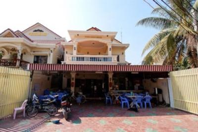 シェムリアプ市内の目抜き通りのシヴァタ通りと国道6号線の交差点から西側に1ブロック行くと道路南側にあるゲストハウスである。