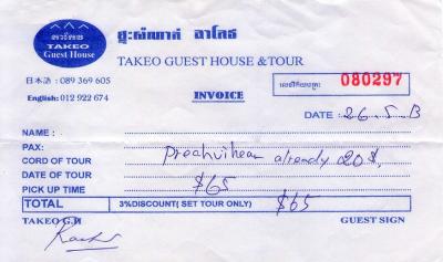 ブレアヴィヒア寺院までは、片道約250kmあるので、タクシー代が少なくとも120ドルから130ドルと高くなる。参加者を募り、人数でタクシー代を割り勘にするため利用した。ゲストハウスとしては、まあまあと感じられるレベルであるが、スタッフが家庭的で、気楽なところが良い。同じようなゲストハウスが他にもあるが、肩の張らないリラックスできるところが魅力になっている。
