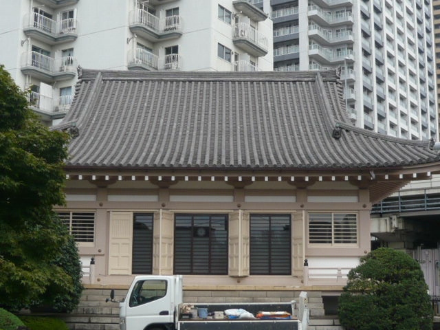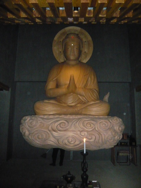 都市の中の山寺を念頭に設計された斬新なスタイルの寺院です。高層のためエレベーターが設置されていて、一般的な寺院の形態とは、全く別になっています。