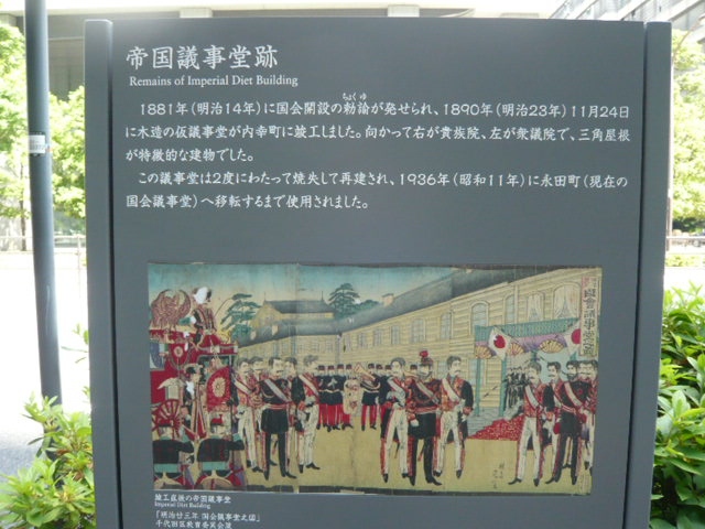 7年ぶりに帝国議事堂跡の標識を訪れました。日比谷公園の西側に立てられています。