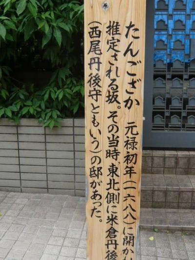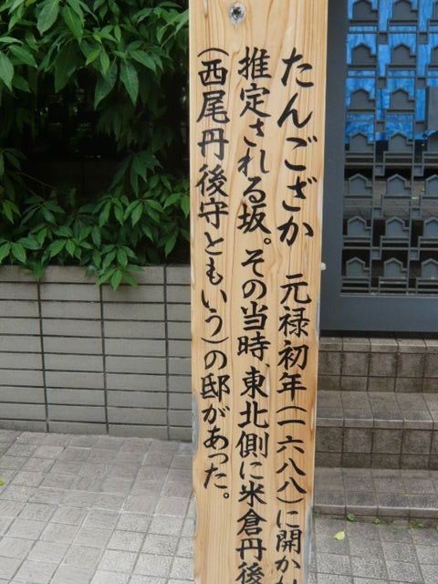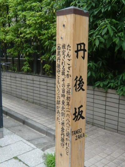 江戸時代の元禄年間に、この坂の傍に、米倉丹後守の屋敷があったとのことです。