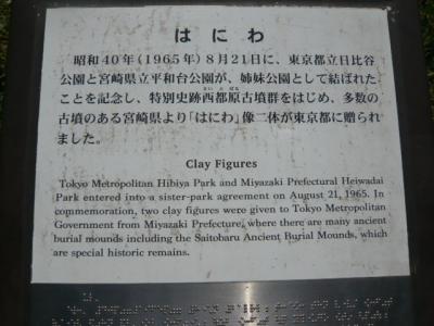 日比谷公園のはにわ像は、松本楼の向かいにあります。宮崎県立公園から贈呈された像です。