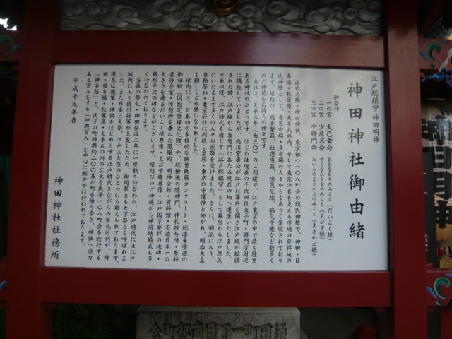 それら水神社の本社が、神田明神の敷地内に置かれているかという経緯については、現在調査中ですが、水神様を信仰の中心としている関係で、神田明神の中心たる神田神社とは、信仰の面で、別とされているのでしょう。