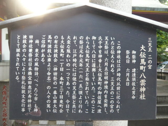 同じ神田明神の中の大伝馬町八雲神社も、三大王のうちの二の宮大王と呼ばれていて、