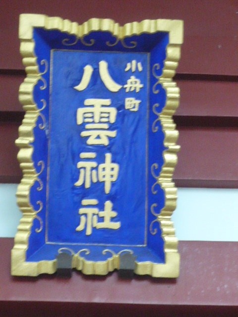 本社殿の額の色が青色となっていて、かつ小舟町としいう文字が入っている点が違っています。