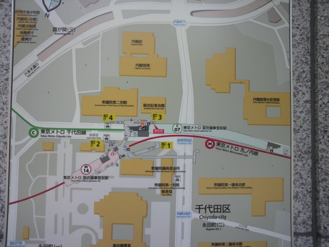 国会から首相官邸の横の坂を下がっていくと、溜池からの通りに出ますので、その交差点を左折すると、特許庁があります。
