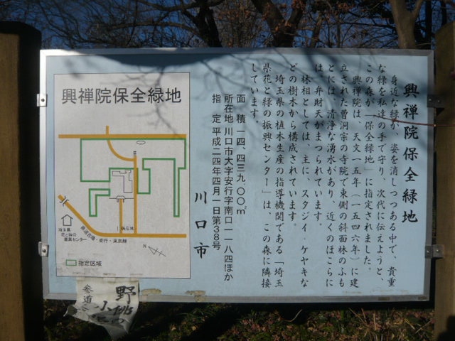 興禅院の境内や敷地は、周辺一帯に及んでいて、広大です。東側及び南側には、修行に適するような自生地が広がり、川口市からも自然保護林としての役割を指定されています。