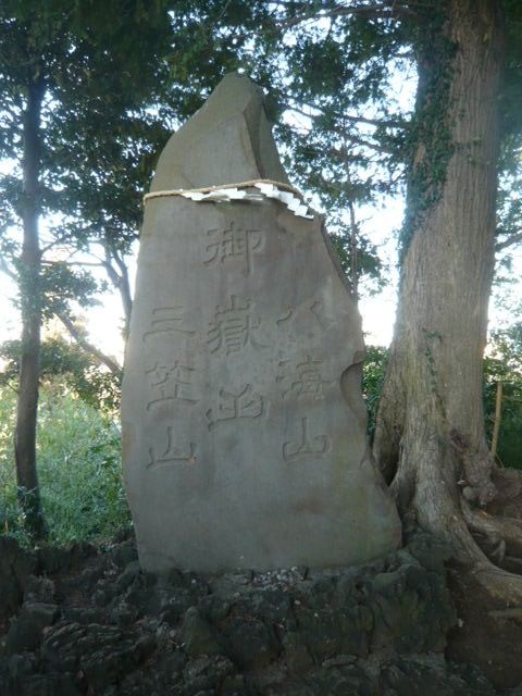確かに、九重神社の本社殿の裏手に、御嶽山という標石が置かれた高台があります。