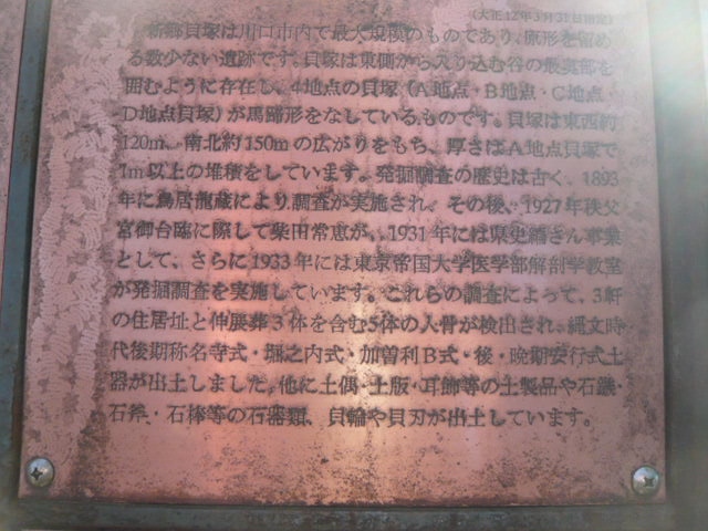 新郷貝塚は、川口の若宮公園内にある埼玉県内最大の貝塚であり、縄文時代の生活の遺跡です。