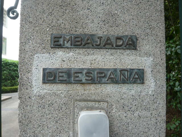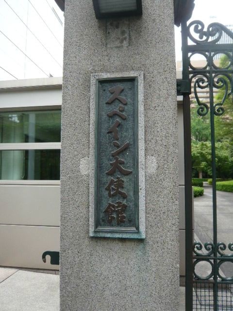 米国大使館から、霊南坂を西南方向に登って行くと、ホテル・オークラがあり、更に進むと、右側に、スペイン大使館が見えてきます。