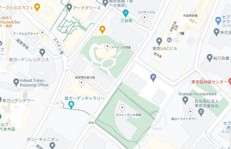 スペイン大使館は、六本木の高台にある大使館で、スウェーデン大使館の斜め向かいです。