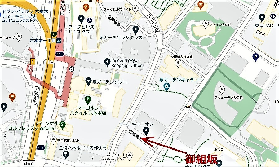 御組坂は、幹線道路たる霊南坂と泉通りとの間を結ぶ坂になっていて、利便性の高い坂と言えるでしょう。