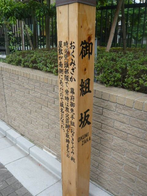 江戸時代の幕府の御先手組と言って、戦時には戦闘部隊として進み、平時には、火事盗賊取り締まりにあたる組の屋敷の傍にあった坂のことから、御組坂と呼ばれていたようです。