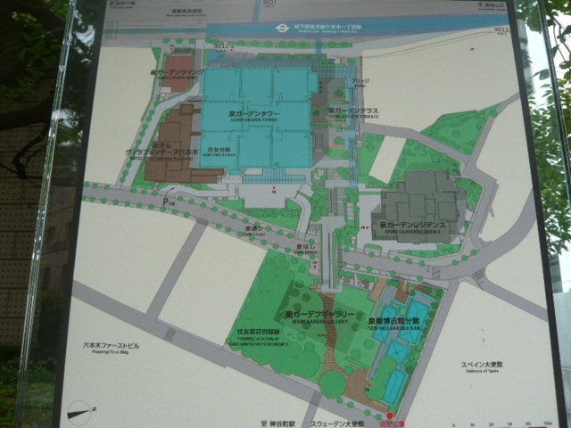 米国大使館、スウェーデン及びスペイン大使館の道路から地下鉄六本木一丁目駅の間の傾斜地形を活用した東京都の再開発事業の一環で、泉ガーデンが創設され、それらの中心が泉ガーデンタワーの高層施設です。