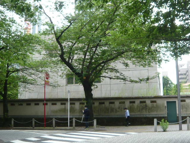 スペイン大使館の周囲の高い塀は、大使館の敷地を囲っています。
