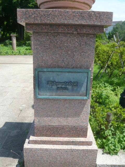 平成つつじ公園の角部には、設立からの経緯や開設以降に係る行事等を記念する石碑等があります。