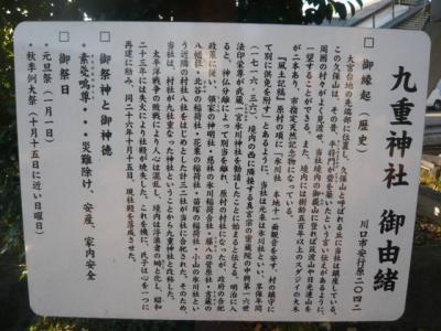九重神社は、武蔵国一宮氷川神社のご神体が、勧進・遷座され、原村の氷川村社との位置づけで、密蔵院が別当寺としての管理のもとにありました。